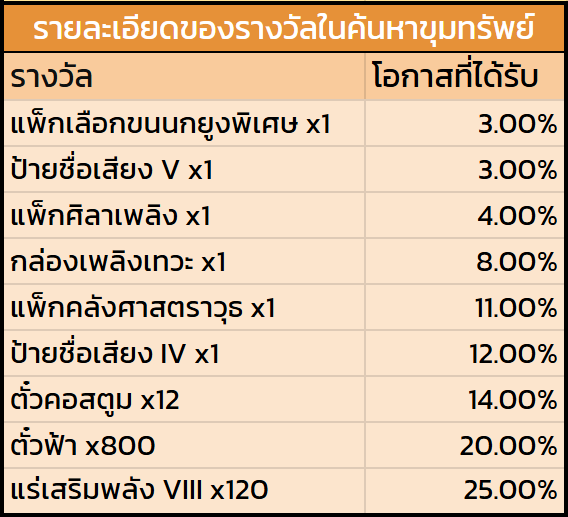 (รายละเอียดรางวัลการค้นหาขุมทรัพย์)