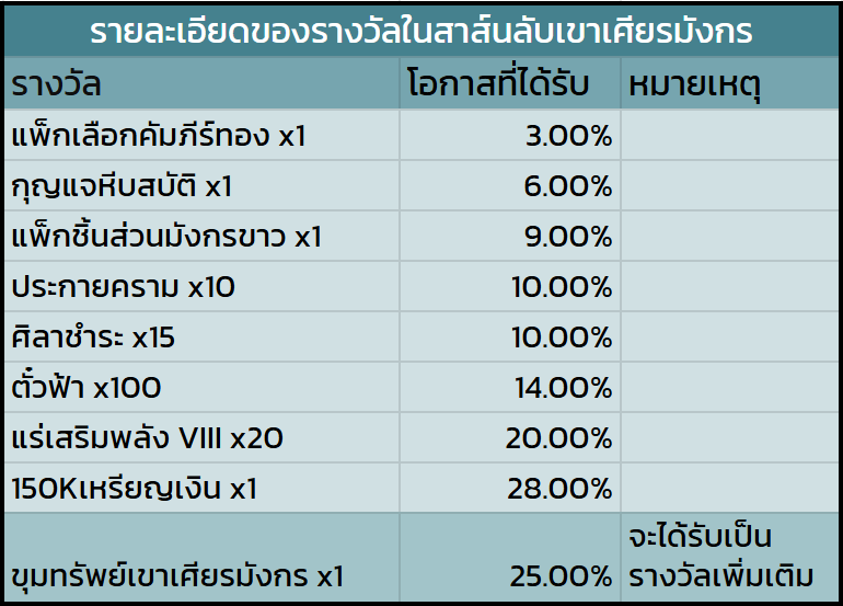 1.3 รายละเอียดของรางวัลสาส์นลับถ้ำหมื่นหิมะ