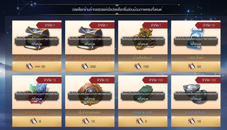 4.ร้านค้ากลสวรรค์: เมื่อยอดฝีมือปลดล็อกชิ้นส่วนม้วนภาพครบทั้งหมด จะสามารถซื้อไอเทมล้ำค่าของร้านค้ากลสวรรค์ได้